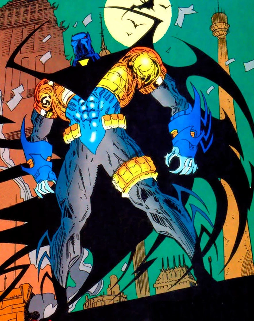 Teniendo a Jean-Paul Valley bajo el manto del Murciélago, esta versión se popularizó entre 1993 y 1994 durante la trilogía conocida como Knightfall. Su apariencia estaba compuesta por un traje-armadura que no solo lo protegía de prácticamente cualquier cosa sino que además lo hacía mucho más intimidante, un factor que nunca está de más cuando se trata de combatir criminales. Este traje tuvo una segunda versión, la cual pasó de ser azul y grisácea a ser roja, cambiando también el color del casco, guantes y la capa/alas.