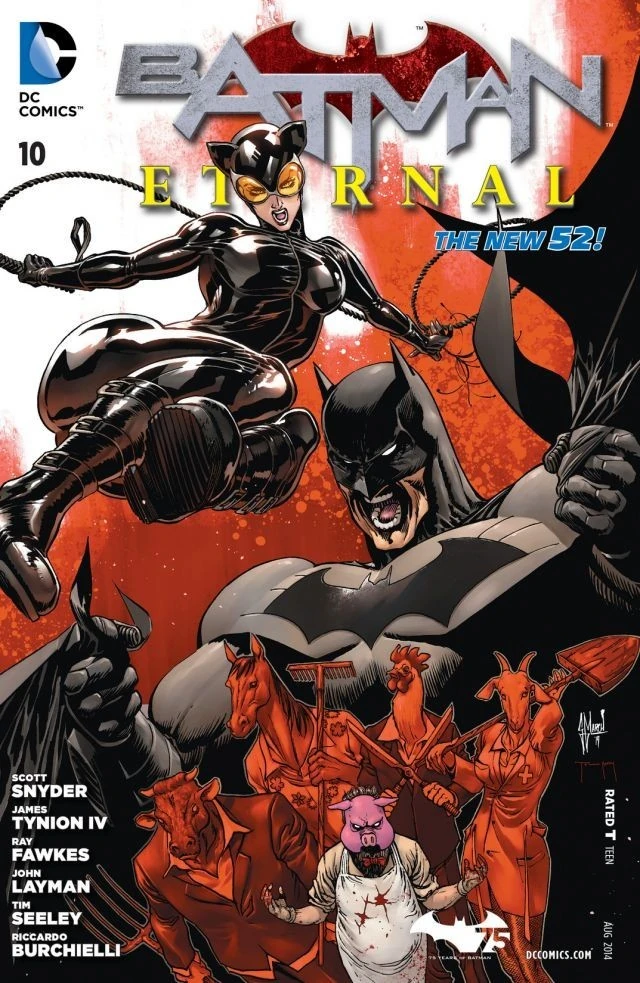 Inmediatamente Alfred le informa Bruce sobre la situación de rehenes en el hotel de Falcone y que Selina se encuentra involucrada. Por su parte, Cluemaster trata de averiguar si en verdad sus matones mataron a su hija, ya que en Internet alguien ha comenzado a escribir artículos sobre él llamándolo la "última amenaza de Ciudad Gótica". Efectivamente, Stephanie ha estado pasando todo su tiempo en la biblioteca (ya que se esconde allí por la noche) con la misión de revelarle al mundo los planes de su padre. Mientras tanto, Pyg y sus sirvientes preparan todo para convertir Falcone en un híbrido mitad hombre mitad halcón, destino que Selina también compartirá pero por fortuna Batman irrumpe en la escena y comienza a acabar rápidamente con los villanos presentes y rescata a Selina antes de que la policía, por orden del Comisionado Forbes, irrumpa en el lugar para tratar capturarlo. Una vez a salvo, Bruce le pide a Selina no involucrarse con Falcone ya que este es más peligroso de lo que parece. Pero ella no lo cree así y le revela como al Romano se le escapó algo entre sus palabras que dejo entrever que está trabajando con otra persona, que por lo visto podría ser la verdadera amenaza. Así que esa nueva información, Bruce se ve obligado a preguntarse quién es la verdadera amenaza, sin saber que es observado por un misterioso sujeto desde las sombras.