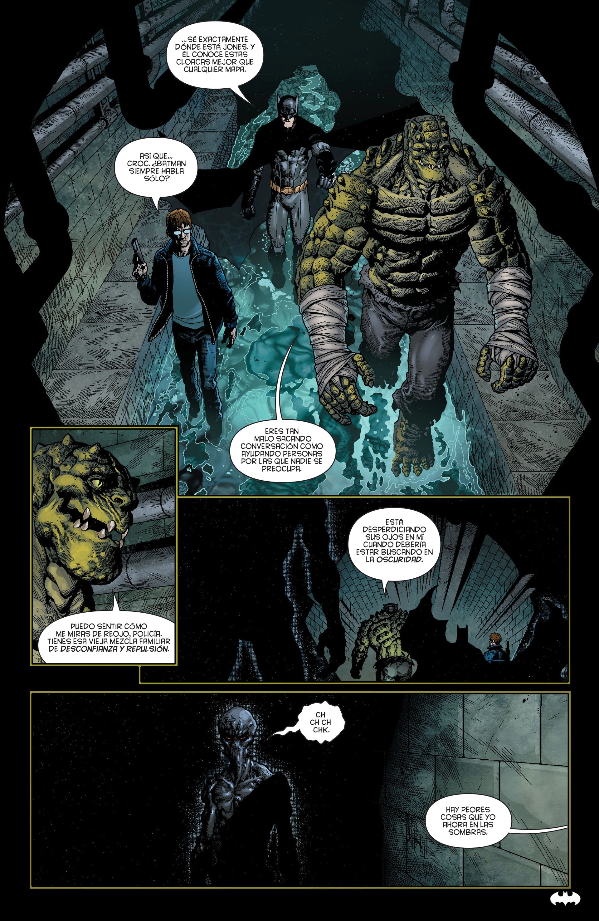 acompañarlo. Ambos caminan unos pocos pasos antes de encontrar el cadáver del hombre que ingreso allí antes que ellos. Su rostro había sido devorado por algo por lo que tanto Batman como Bard suponen que el responsable fue Killer Croc. No obstantes el mutante, tras escuchar la conversación de ambos, se arroja ante ellos molesto de que siempre se lo acuse de esos crímenes solo por su condición. Tras reprocharle al héroe no haber estado cuando Bane tomó la ciudad (y mientras Bard y Batman) esquivan sus ataques, Croc les informa que él jamás habría matado a sus amigos; Batman logra hacerlo calmar velozmente al decirle que cree en su palabra luego de ver la huella de una mano estampada contra una de las paredes del alcantarillado. Por otro lado en Blackgate, el compañero de celda de Gordon le hace ver como los antiguos soldados de Falcone y el Pingüino ahora coexisten en paz desde que la guerra de bandas finalizo.