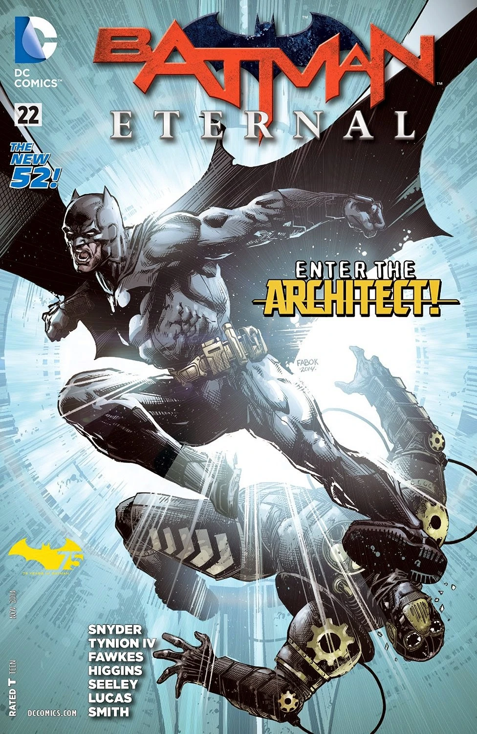 Mientras empaca una maleta para volver al hospital donde Alfred se encuentra internado, ella pasa junto al reloj del abuelo y recuerda que su padre le pidió que lo pusiera a las 10:48, lo cual tras hacerlo le revela la entra hacia la Baticueva. En otra parte de Ciudad Gótica, la construcción de la Torre Beacon mientras es supervisada por los encargados de la obra, sin embargo ellos se ven interrumpidos ante la inesperada aparición del Arquitecto junto a un grupo de secuaces armado. Por otro lado los sensores de movimiento en la