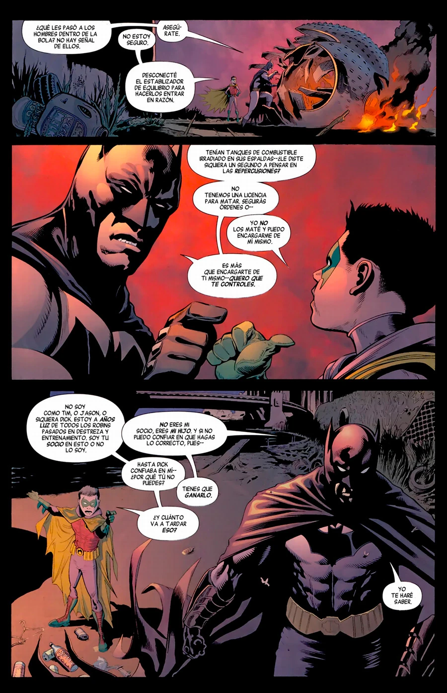 Inmediatamente son alertados de un robo de material nuclear en la universidad. Ambos llegan y logran detener a los maleantes, pero nuevamente Damian desobedece las ordenes de su padre lo que termina haciendo que tres de los delincuentes pierdan sus vidas en medio del escape. Bruce le remarca nuevamente sus errores a su hijo, pero éste no esta dispuesto a tolerarlo y comienzan a discutir reavivando aun mas la desconfianza que ambos se tienen. Por su parte en Moscu, NoBody, quien ataco y noqueo a Ravil comienza a sumergir al héroe y al sujeto que estaba persiguiendo en una pileta repleta con ácido manifestando su rechazo hacia Batman Incorporated y hacia Bruce Wayne, a quien jura visitar para acabarlo.