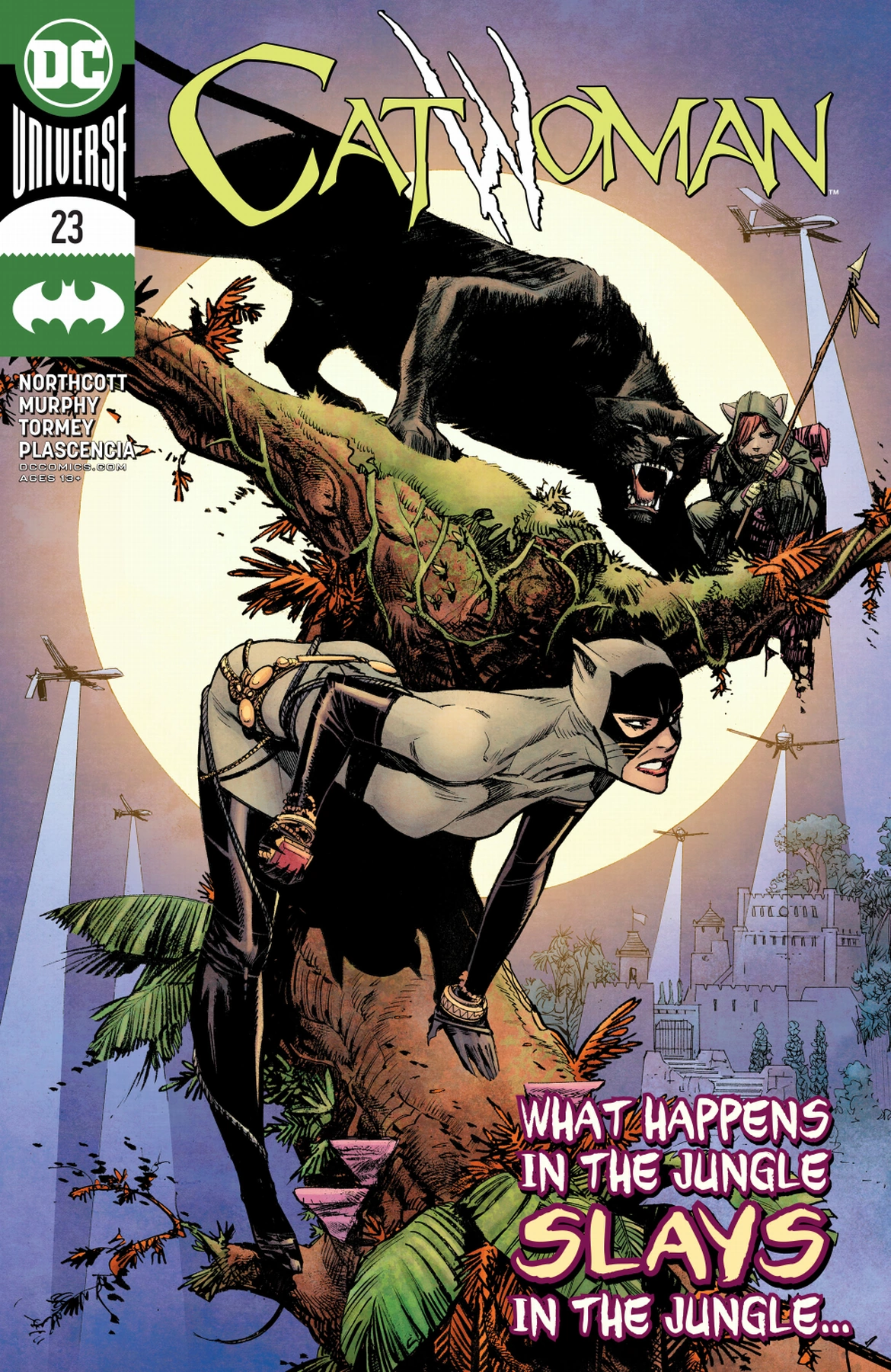 "¡Incluso Catwoman necesita un descanso de la ciudad de vez en cuando! Con una historia creada por el ganador del Premio Eisner Sean Murphy (Batman: White Knight) y el debut en DC de la coguionista Blake Northcott (Vampirella), únete a Catwoman en esta historia de dos partes en la que ella se va a la jungla para desahogarse de la mejor manera que conoce... ¡robando el diamante más grande del mundo de una subasta anual súper secreta de supervillanos, por supuesto!"