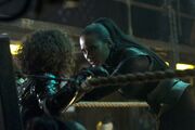 Días después tras enterarse del secuestro de Bruce, Selina se unió a un grupo de aliados improbables encabezados por Gordon y el Pingüino para emprender un ataque contra Galavan. Al llegar a la torre del enemigo ella los condujo con seguridad hasta la sala del ritual en donde todos participaron en una feroz lucha contra los monjes de la Orden de San Dumas para poder salvar a Bruce. Al final es objetivo pudo ser conseguido.[22] Tiempo después Selina asistió a una reunión entre el Pingüino y sus lugartenientes en matadero Quality Meats. De repente un sujeto con un arma criogénica se coló en el lugar para cumplir con un trabajo y rápidamente congeló a la mayoria de los presentes. Gracias a su agilidad Selina logró escapar de problema no sin antes salvarle la vida al Pingüino, y luego de dejarlo solo por unos segundos, ella regresó a bordo de un automóvil para escapar. Desafortunadamente días después ella estuvo presente en el momento en que Gordon decidió arrestar al Pingüino para sacarlo de las calles. [23] Muchos días después ella presenció secretamente el momento en que Butch Gilzean y Tabitha Galavan hicieron un pacto para controlar junto el crimen organizado de Gotham. [24]