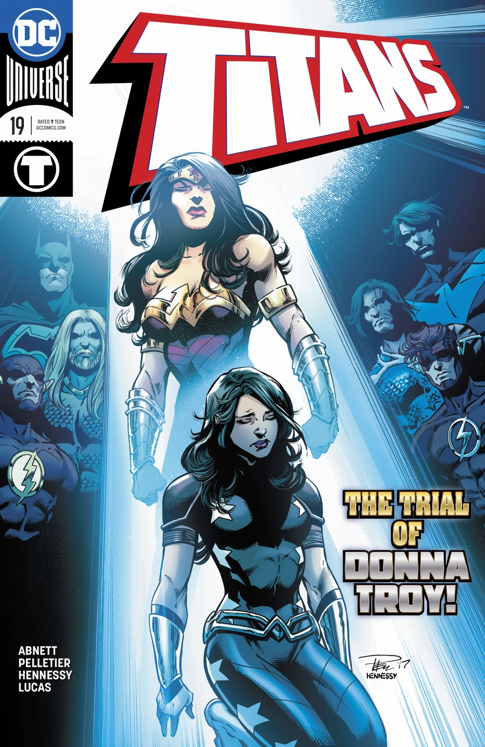 "“¿Quién es Troia?” Los Titanes intentan recuperar el balance después del épico choque contra Troia, la contraparte futura de Donna, y buscan encarar un futuro más brillante. Pero la Liga de la Justicia quiere respuestas sobre la verdadera naturaleza de Donna Troy, y las obtendrá… ¡incluso si eso significa acabar para siempre con los Titanes!"