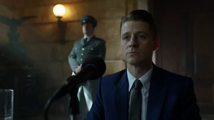 James Gordon, habiendo pasado un mes suspendido de la policía, se presenta a dar testimonio frente a una junta encabezada por Harvey Dent y supervisada por el Capitán Barnes para aclarar sus acciones en la noche que Theo Galavan fue asesinado. Mientras las imágenes del asesinato del alcalde surcan por su cabeza, Jim responde cada una de las preguntas del fiscal con seriedad atribuyéndole todo lo sucedido al Pingüino. Cuando finaliza el testimonio y es exonerado de cualquier culpa por falta de prueba Gordon se marcha a casa junto a Leslie sin percatarse que Barnes y Dent, observándolo juntos desde lo alto del salón justicia,