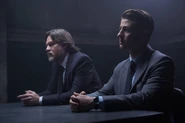 Capitán Barnes arrastrando a Cobblepot directamente a una celda; contiguamente Barnes se acerca a Gordon para aclararle que finalmente podrían saber la verdad sobre asesinato de Galavan.