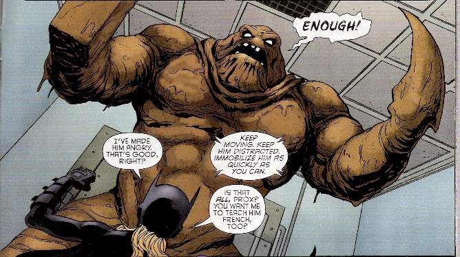 When Hugo Strange infected a Gotham neighborhood with a monster serum, Clayface gathered samples from the neighborhood for October to experiment on and formulate a cure. Clayface was however exposed to this formula himself, causing him to go on a rampage and be shot dead by Batwoman using a specialized bullet. Thanks to October's cure delivered by Cassandra, Clayface regained his humanity in his final moments before dying next to Cassandra Cain.