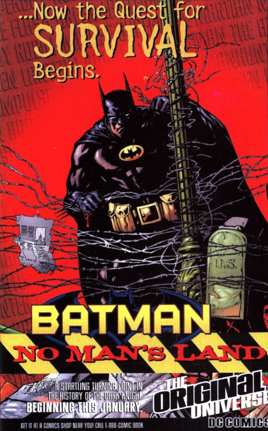 Batman: No Man’s Land is a Batman comic book crossover storyline that ran for the whole of 1999 through the Batman comic book titles published by DC Comics.