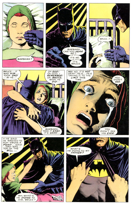 - Originally, it was intended that, in addition to Joker shooting Barbara Gordon through the spine and taking nude photos of her to drive her father insane, that Joker was to be explicitly depicted as raping Barbara Gordon. Artwork for the scene was even created, and the scene ended up cut, although rape was still implied in the final version. Gosh! Comics' Billy Hynes eventually tweeted the original page on December 1, 2013.[11][12]