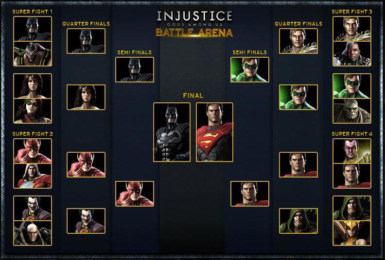 Prior to the games release the battle for DC supremacy began and for the next 10 weeks there was 16 challengers squaring off in the Battle Arena, where the winner of these matches was determined through online voting by the fans. Ultimately the final battle was between Batman vs. Superman in the Batcave.