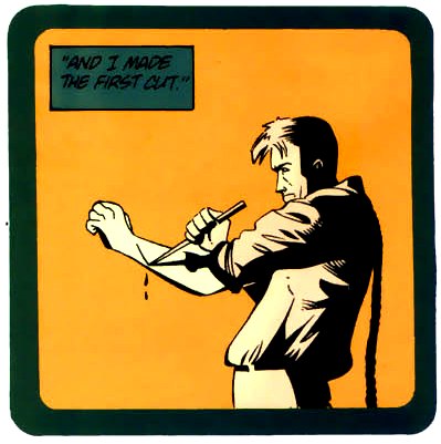 Stunned, he became convinced that "there was nothing at all at the center of [him]...no reason for being, no motivation, no purpose. [He] was just a robot, sleepwalking from one distraction to another, hiding from the truth." While he was attempting to commit suicide by jumping from Gotham Bridge, a homeless man tried to assault him with a knife after he refused to give him money. Instinctively grabbing the knife, Mr. Zsasz saw in the man's eyes that all life is meaningless and that nothing nor anyone matters.
