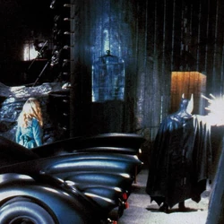 Warren Skaaren's screenplay indicates that Bruce sympathizes with the wounded bat, creating a blatant symbolic image. It is implied to be the bat that burst through the window of his father's study but the filmmakers wanted to avoid depicting the Bill Finger explanation for why he wore a Bat-Uniform, merely hinting at it. The "great survivors" remark is a reference to the Monarch Bat that appeared to Bruce Wayne when he found the Batcave as a child, regarded by him as the 'fiercest survivor.' Thematically the wounded bat is an equal spiritual totem to Napier's damaged playing cards, the inspiration for their personas in the world of night. The wounded bat is a creation of Skaaren and Tim Burton, it did not exist in Sam Hamm's script. In Hamm's take Batman enunciated far more dialogue to Vale, specifically indicating that he discovered the cave as a child and transformed himself into the thing he once feared the most. In the final film the vague reference would only be recognized by diehard fans who read Frank Miller's 1986 Dark Knight series while exorcizing the expository dialogue, giving Batman more mystique.